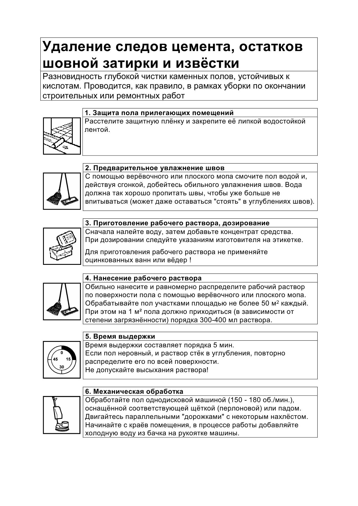 Операционная карта выполнения работ по послестроительной чистке твердых полов